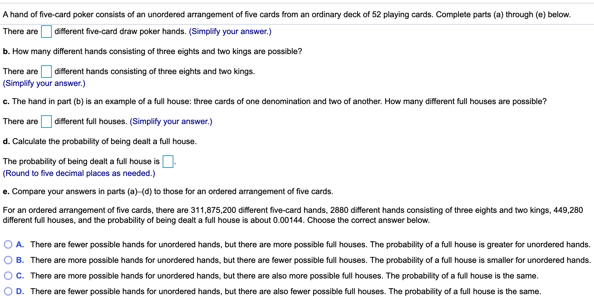 Solved A Hand Of Five Card Poker Consists Of An Unordered Chegg Com